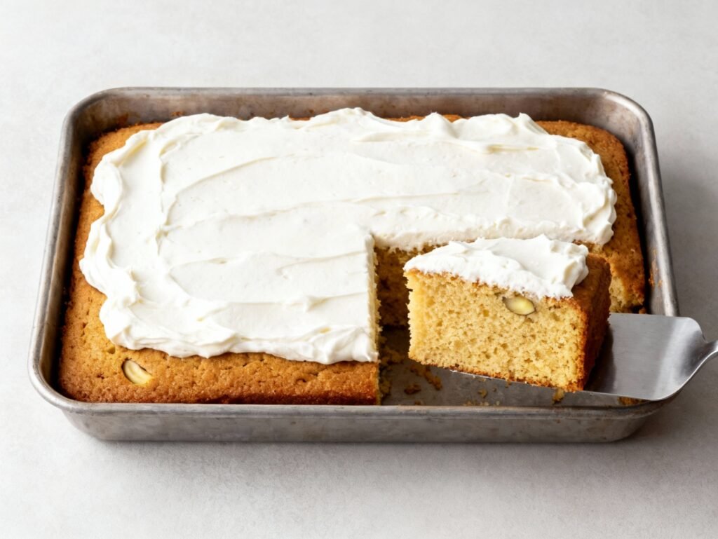4. Bake and cool. Pour the batter into a parchment-lined 9×13-inch pan and bake until a toothpick inserted into the center comes out clean. Let the cake cool completely before frosting.